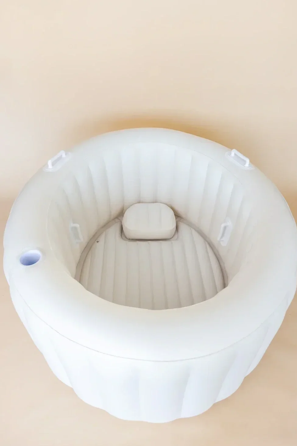 Earthside Birth Pool (original size) in a beautiful “almost white” color. The pool features a cupholder, handles and seat inside the pool. The pool is made from nontoxic, phthalate free, eco-pvc.